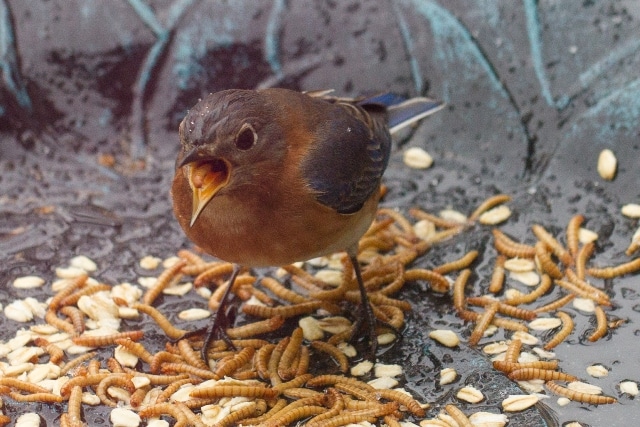 For seed-loving birds, serve up a blend that contains nuts, sunflower meats and dried fruits like apple, blueberry and cherry. Combine suet, mealworms and fruit, nuts and seeds, and you’ll have a complete mix that attracts a wide variety of seed-eating and non-seed eating birds like warblers, bluebirds, kinglets, flickers and robins, which are all birds you don’t typically see at a feeder, says Cole.